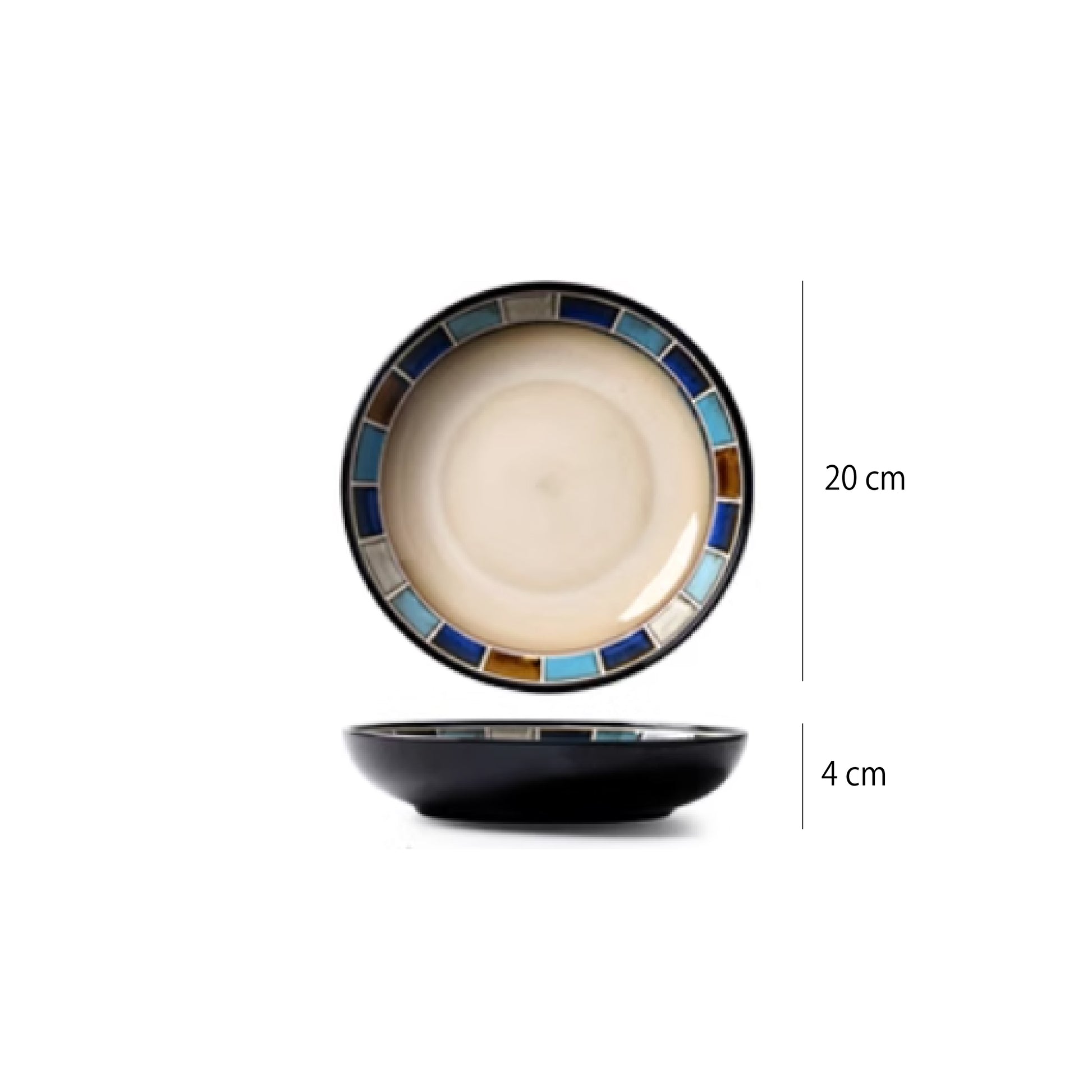手繪馬賽克藍系列 | 藍灰棕 | 直徑20 cm 陶瓷 大深盤