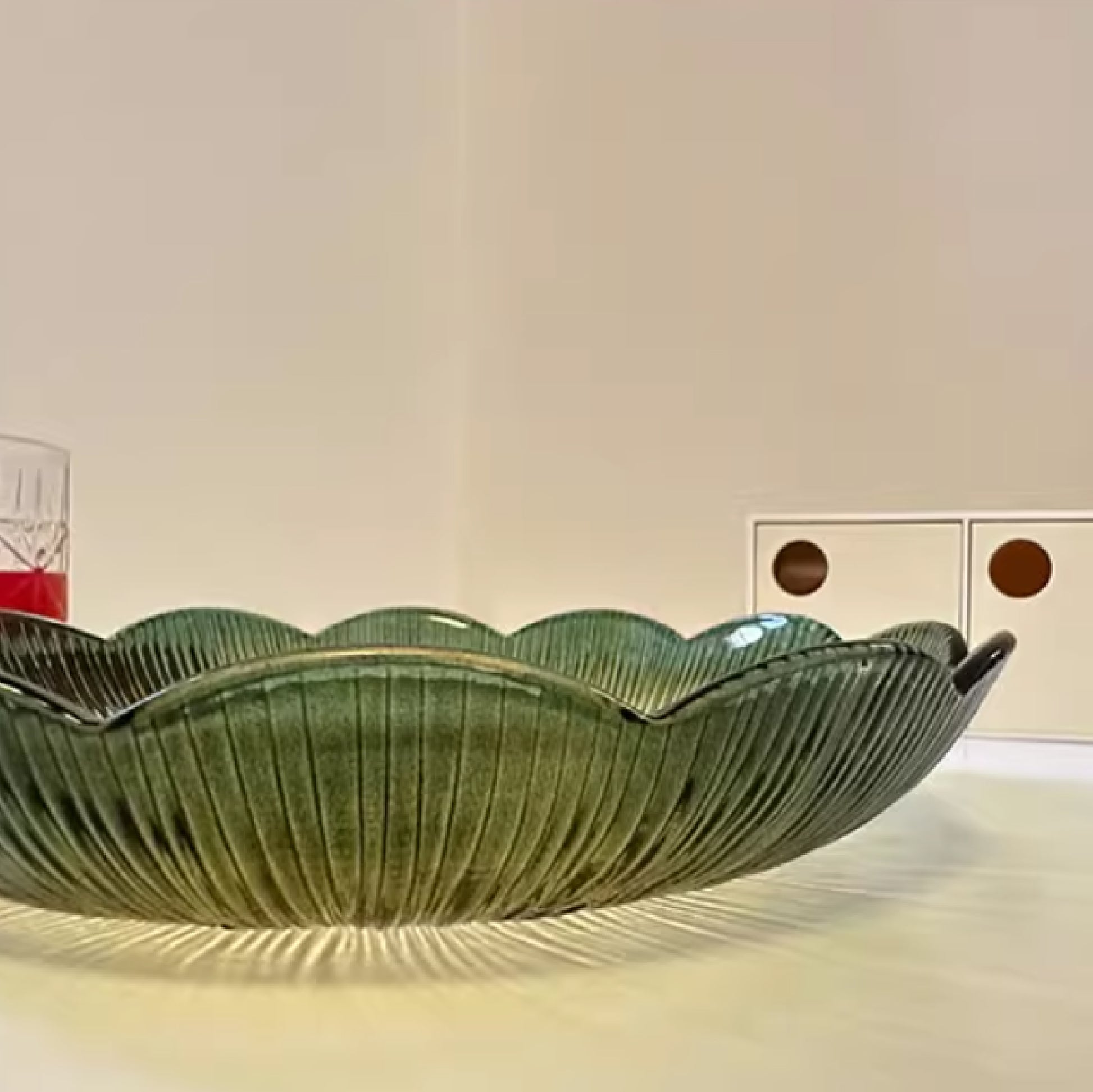 日照湖心花型玻璃果盤 | 直徑22 cm 玻璃 花形盤