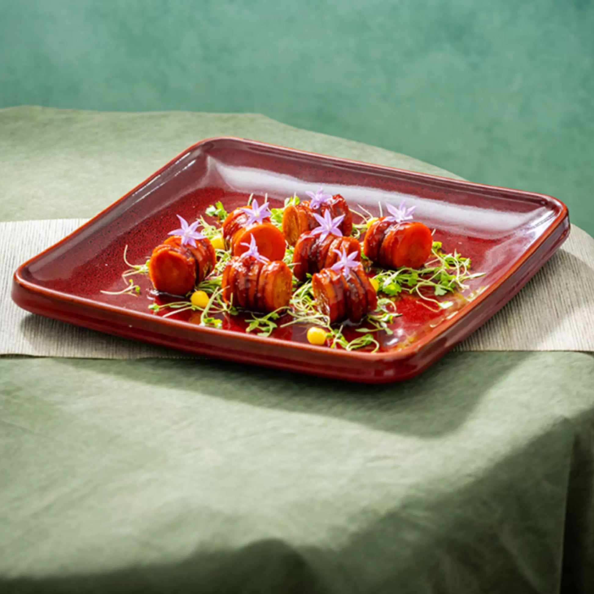 意境窯變正方淺盤 | 窯變紅 | 21.5~27 cm 陶瓷 方形盤
