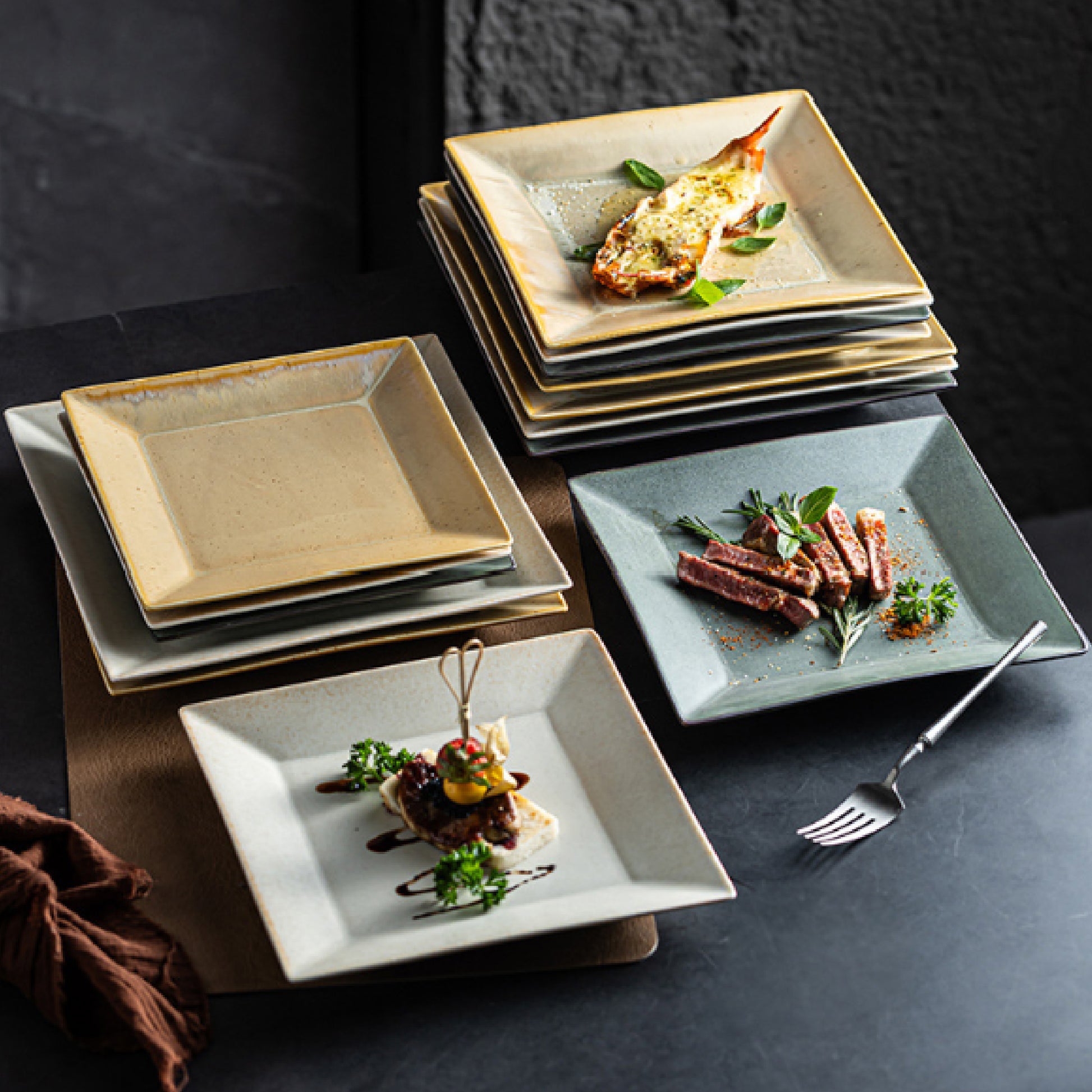 窯變翹邊四方盤 | 3色 | 長 21.5~26.2 cm 陶瓷 正方盤