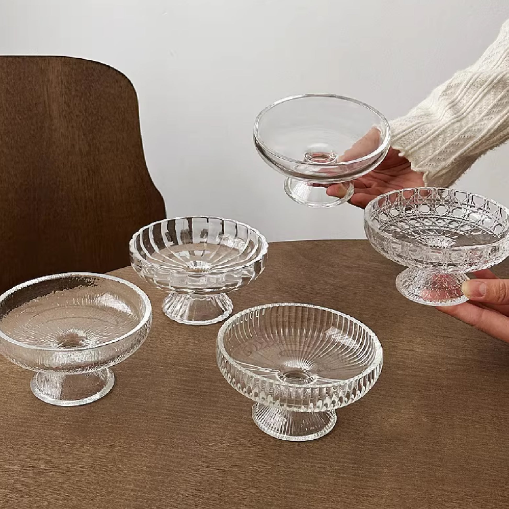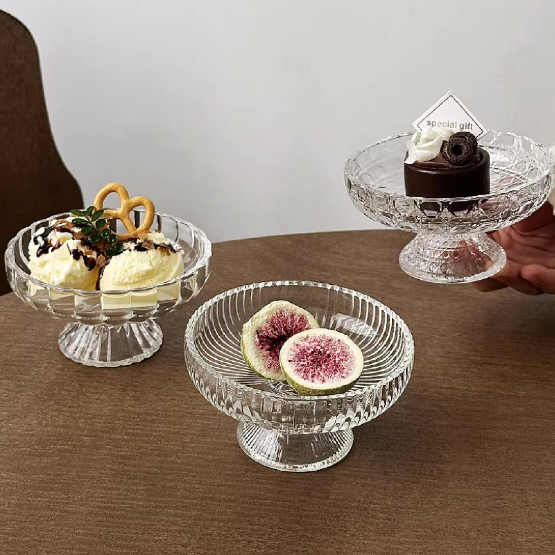 高腳玻璃甜點碗 | 口徑 11 cm 玻璃 高腳碟